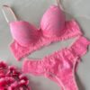 O sutiã possuí aro de sustentação e bojo , sendo P e M com bolhas, g e gg sem bolhas ,alças com regulagem,fecho com dois níveis de tamanho.A Calcinha modelagem asa delta, fio.