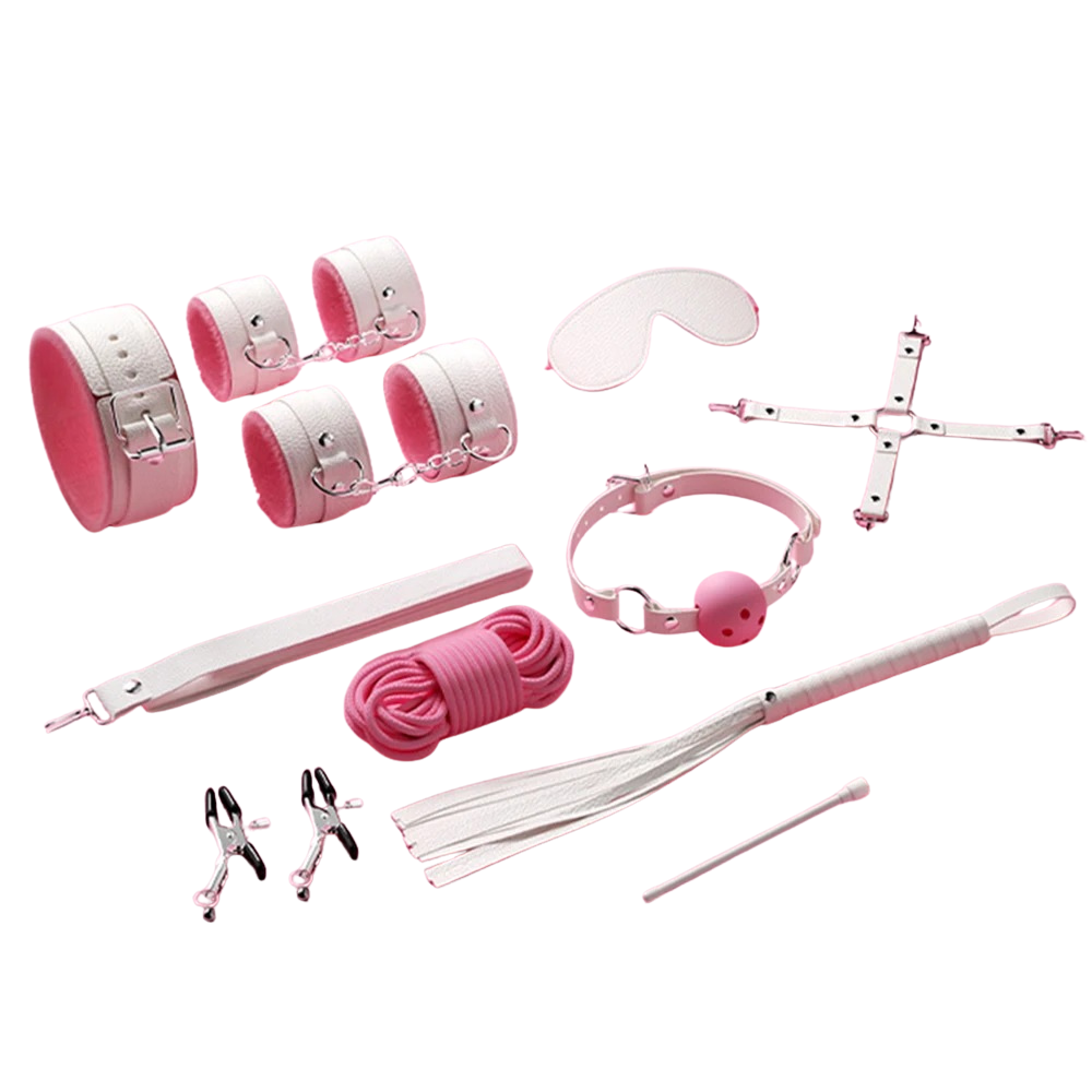 Kit Sado BDSM 10 Peças Rosa Com Branco