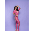 Macacão bodystocking em tecido tipo meia-calça, modelo arrastão trama grande.
