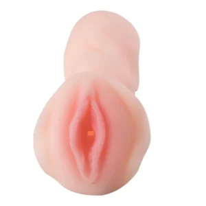 Masturbador em formato de vagina feito de CyberSkin com fissuras e texturas internas, material macio de toque aveludado que imita perfeitamente a textura da pele humana.