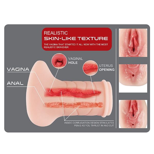 Masturbador feito em formato de Vagina e Ânus, pensado para trazer o máximo de prazer e uma sensação bem real durante seu uso.