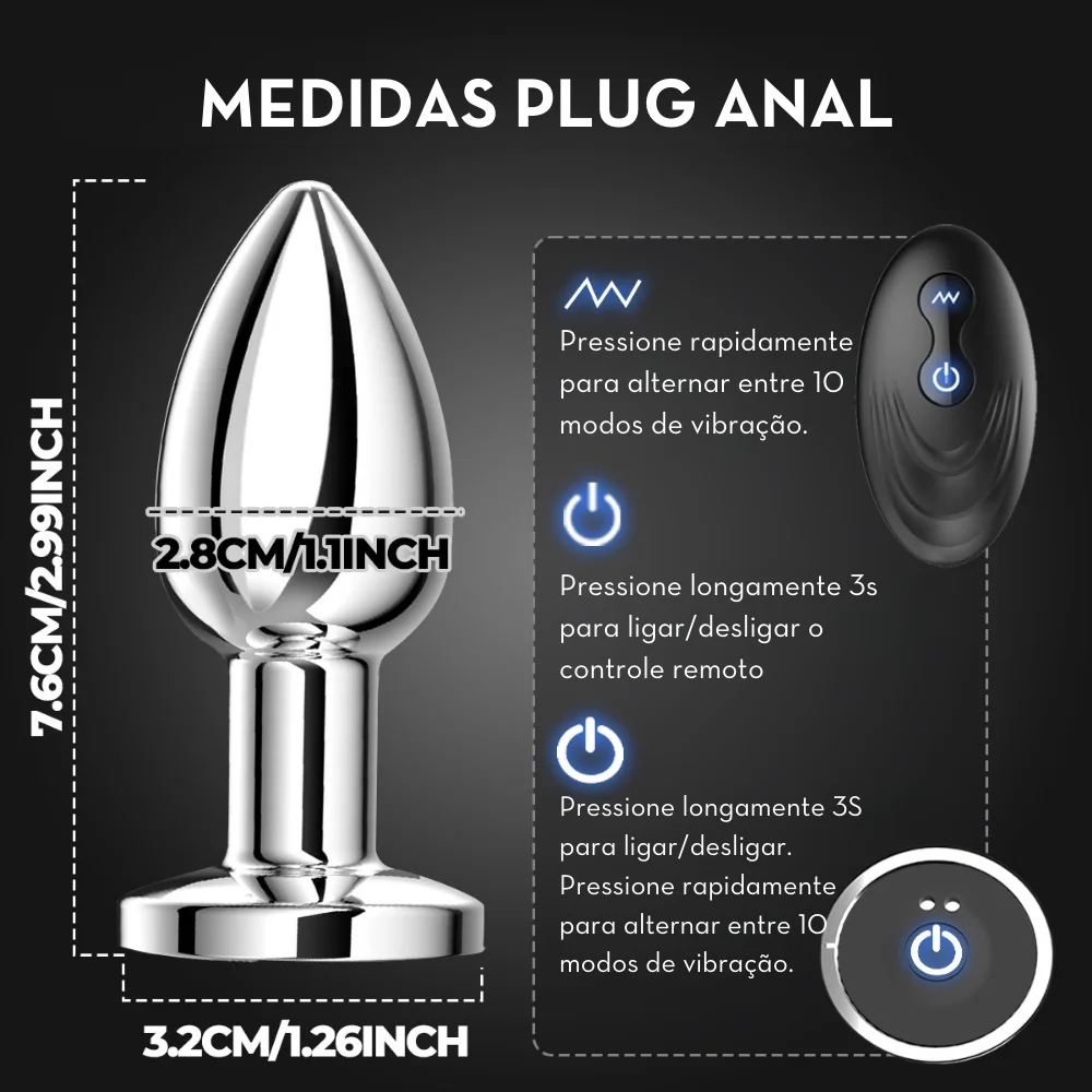 Plug Anal de Aço com Vibro e Controle Remoto