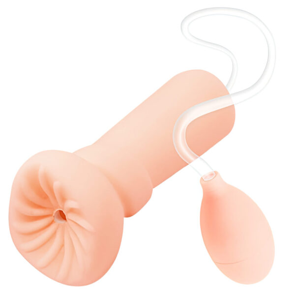 Simulador de sexo anal com sucção e saliências internas.Produto: 14,5×4,5×5,5 cm.Material: Cyberskin.