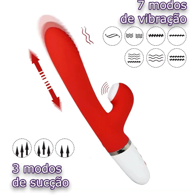 O Vibrador que estimula também o ponto G fazendo movimento de sobe e desce enquanto faz a sucção por ondas de pressão no clitóris,